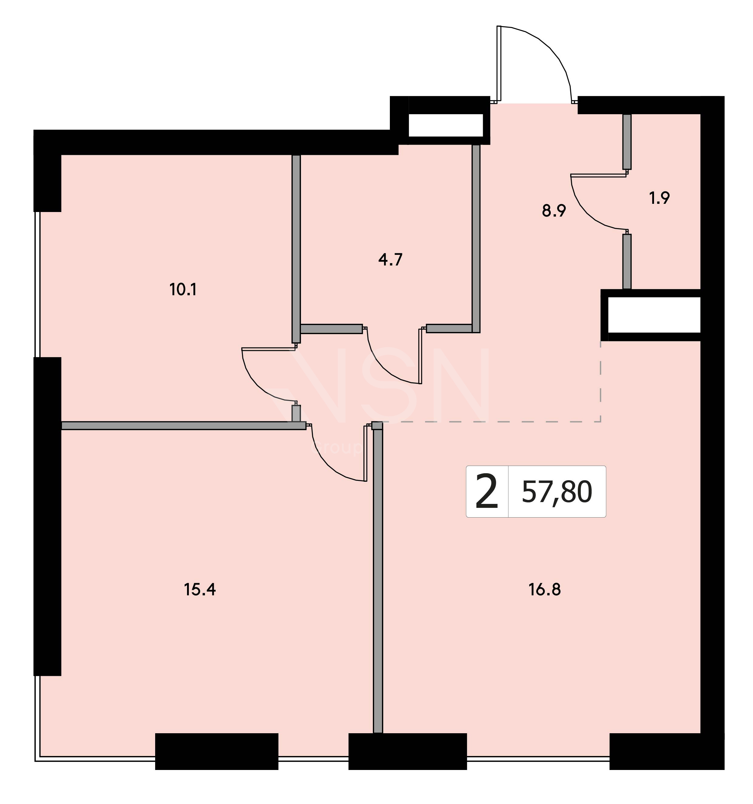 1-комнатная квартира 48.58м²,