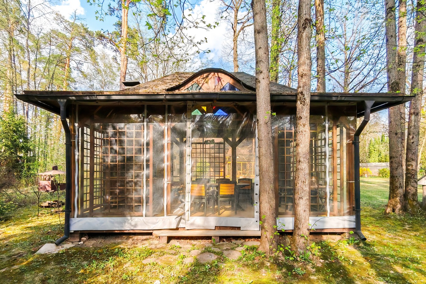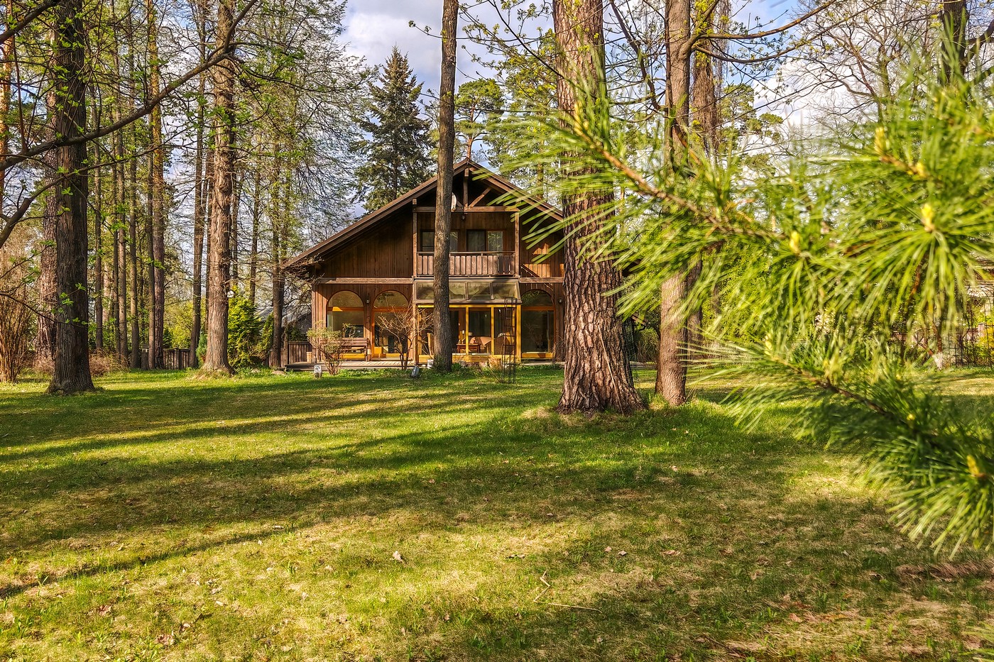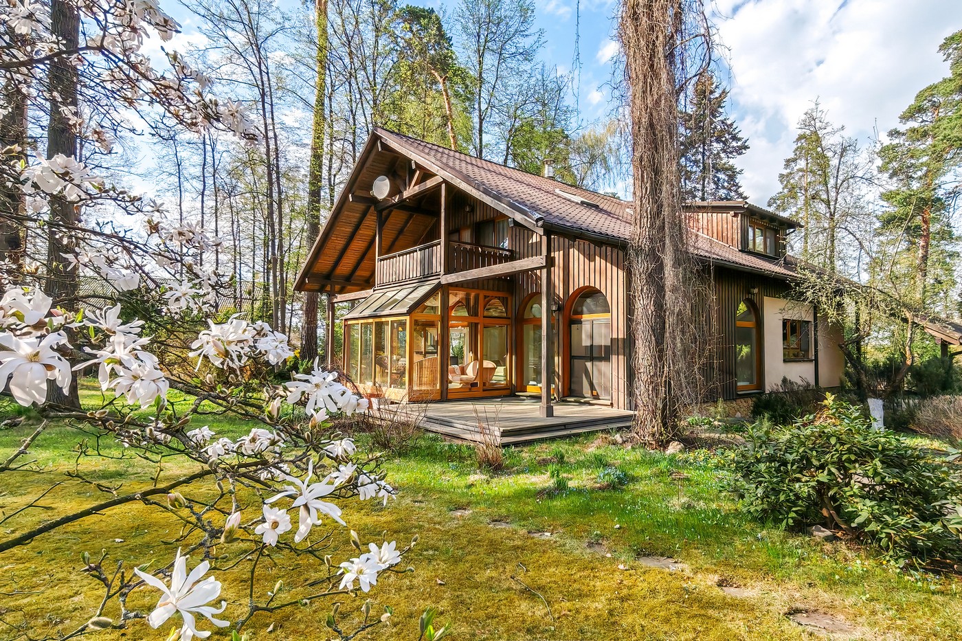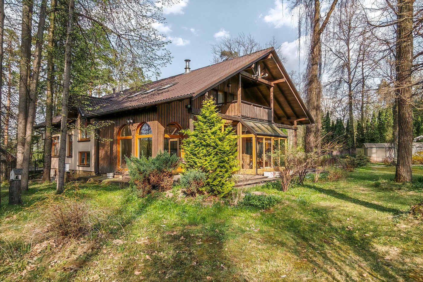 * Стиль: уютное деревянное шале с окнами в пол, с видом на сад и лес. <br />