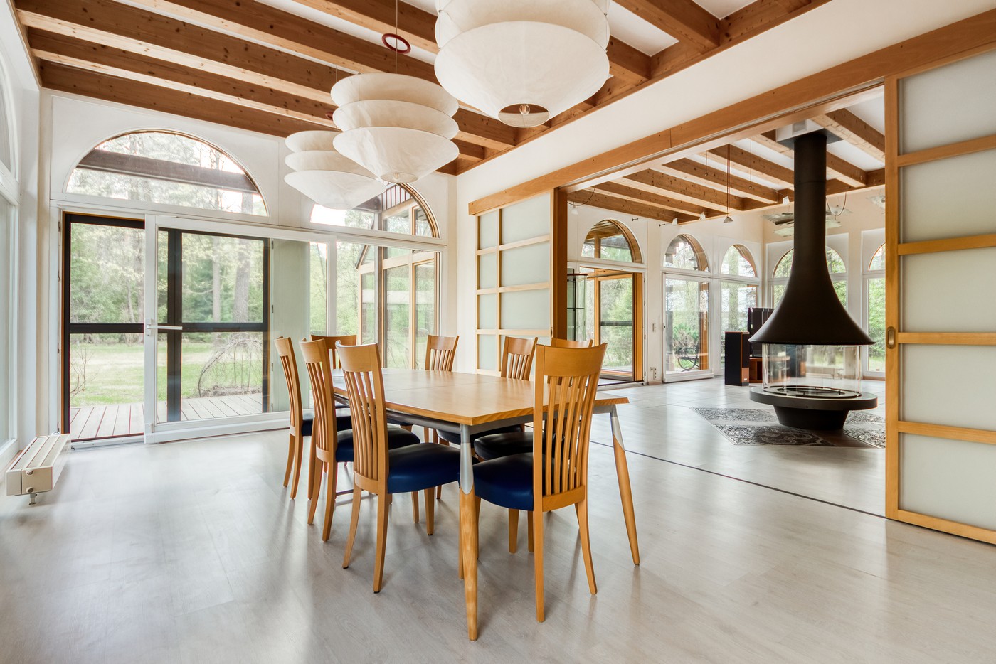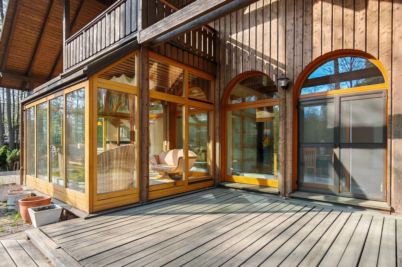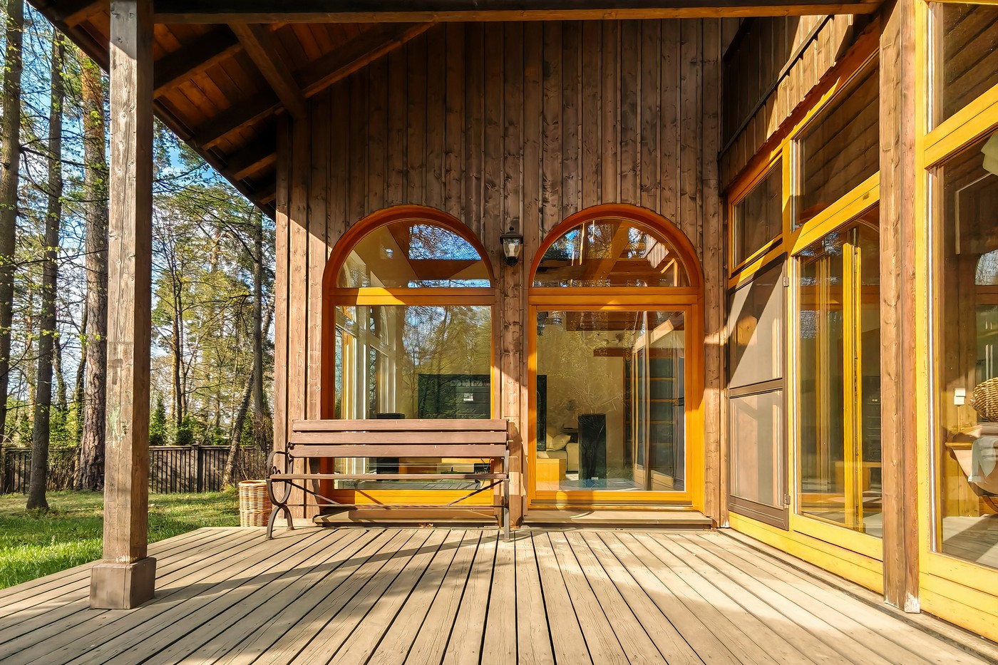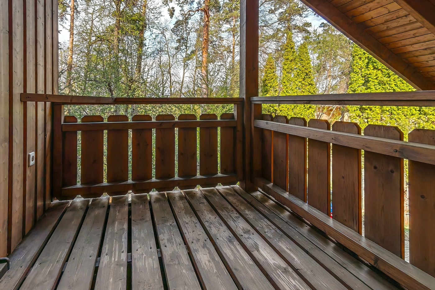 * Стиль: уютное деревянное шале с окнами в пол, с видом на сад и лес. <br />