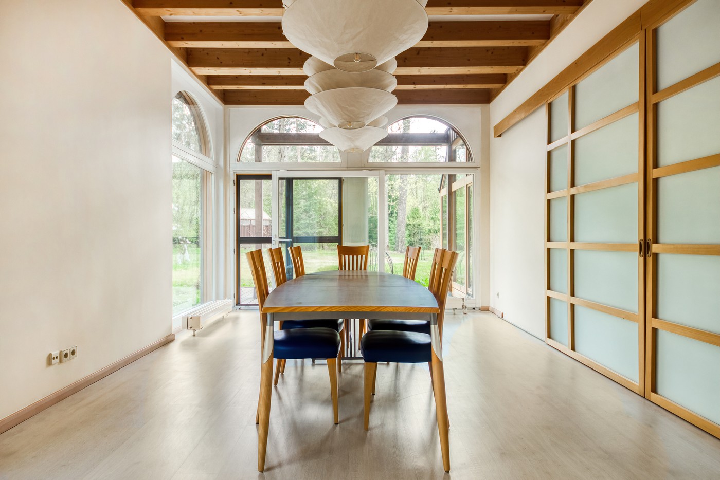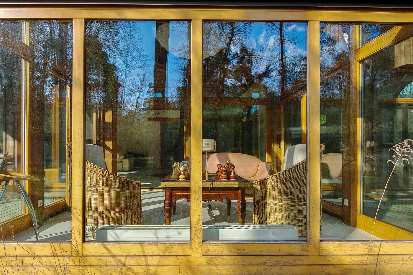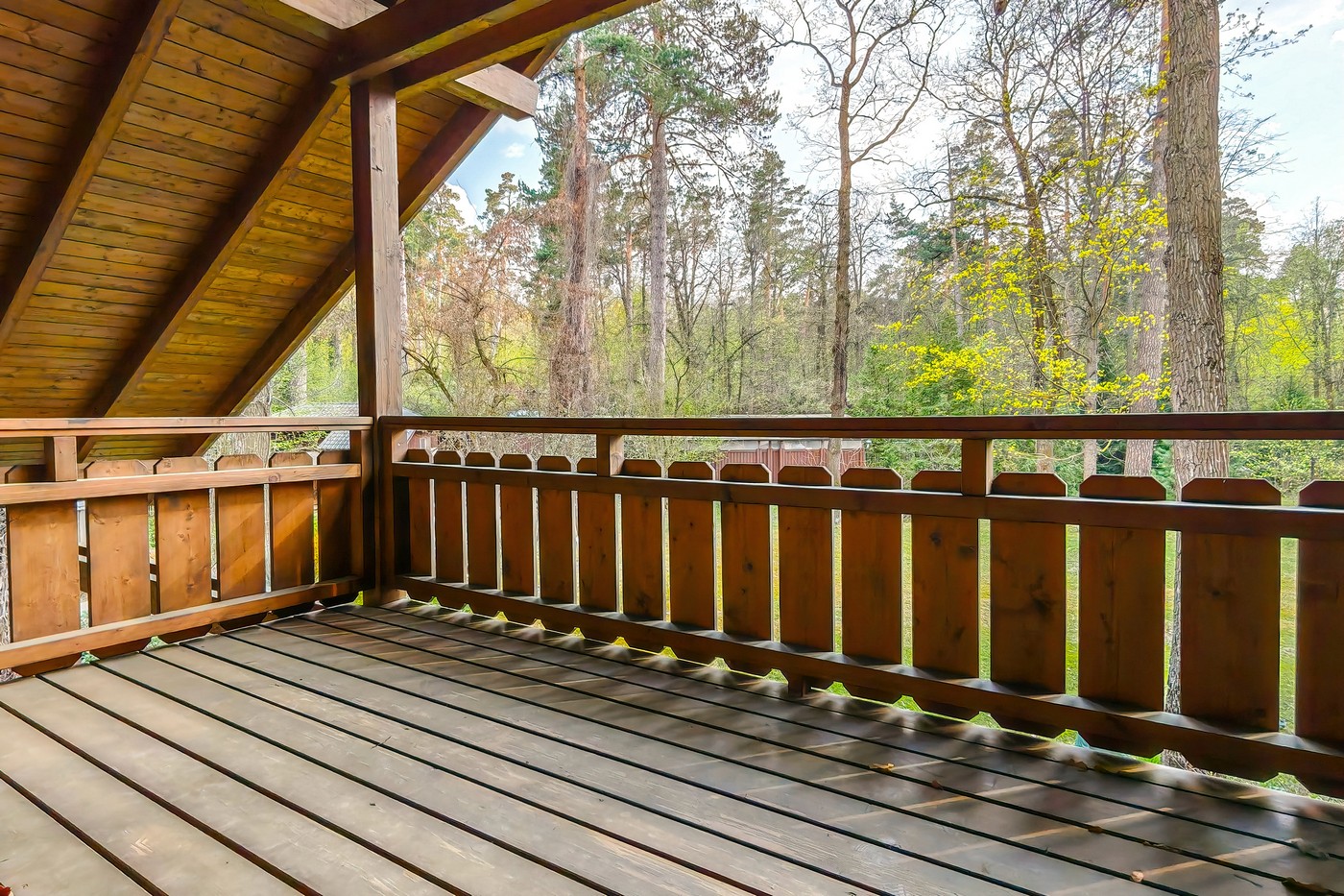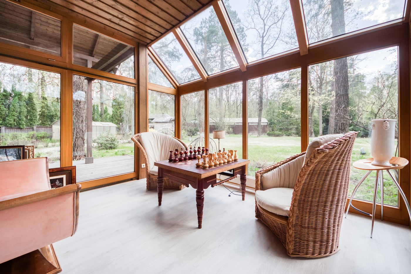 * Стиль: уютное деревянное шале с окнами в пол, с видом на сад и лес. <br />