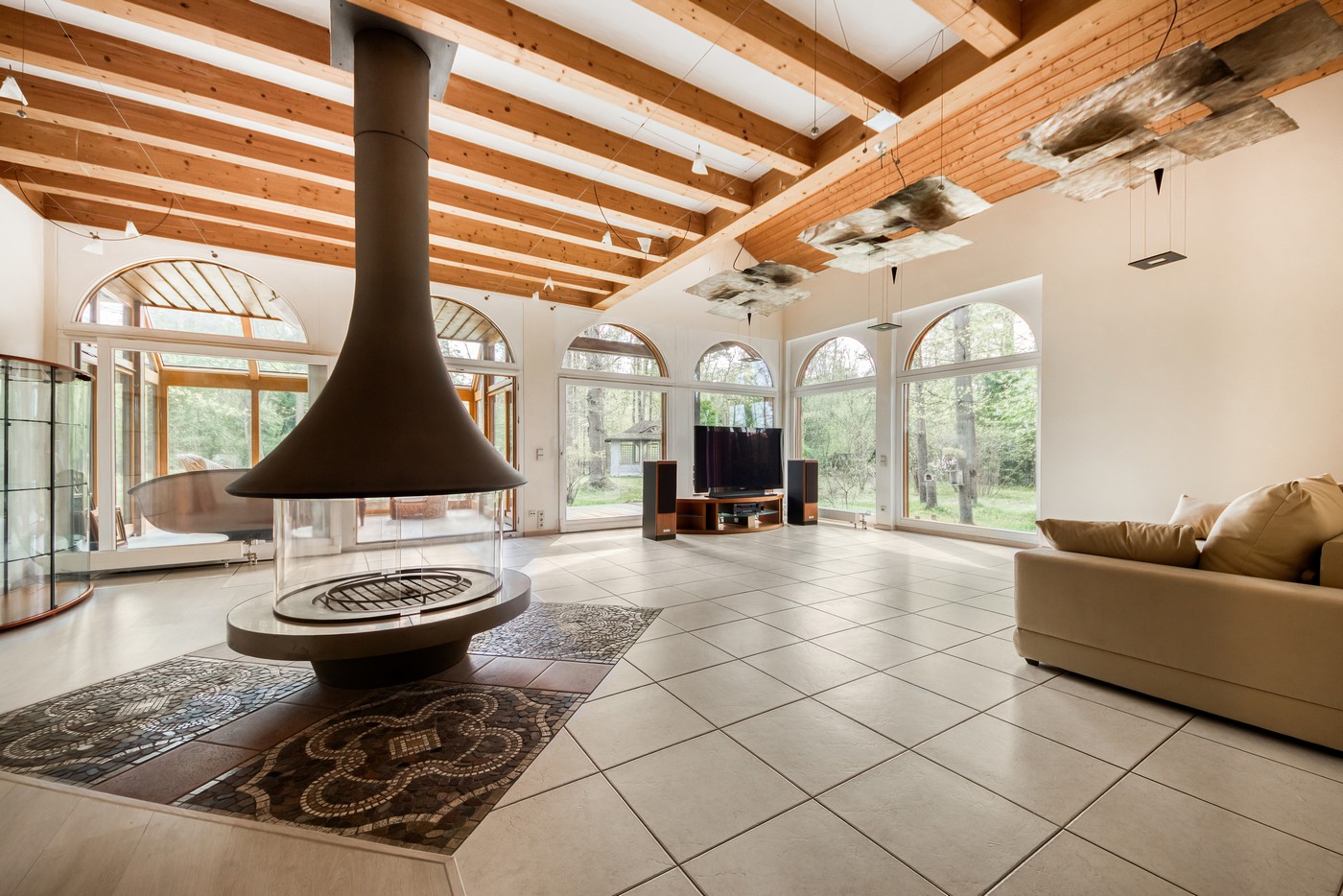 * Камин, панорамные окна, высокие потолки (от 3 до 6 метров)<br />