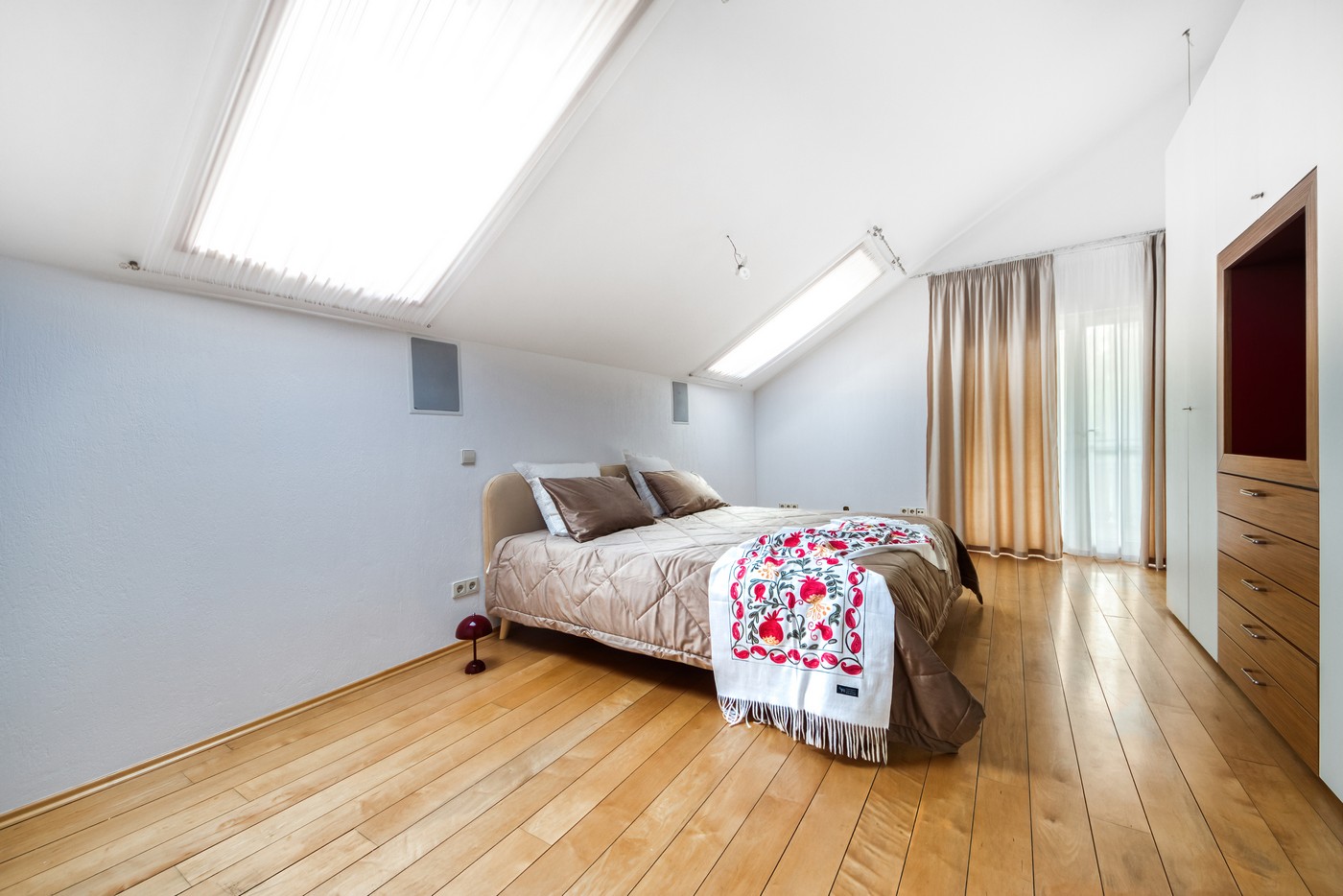 Сдается в аренду светлый и уютный дом в коттеджном поселке, расположенном в 10 километрах от Москвы. Дом легко доступен, в том числе через платную трассу. Полностью обновленный в 2025 году, он состоит из двух этажей: кирпичного первого и деревянного второго. В доме четыре спальни и комната для персонала.<br /><br />